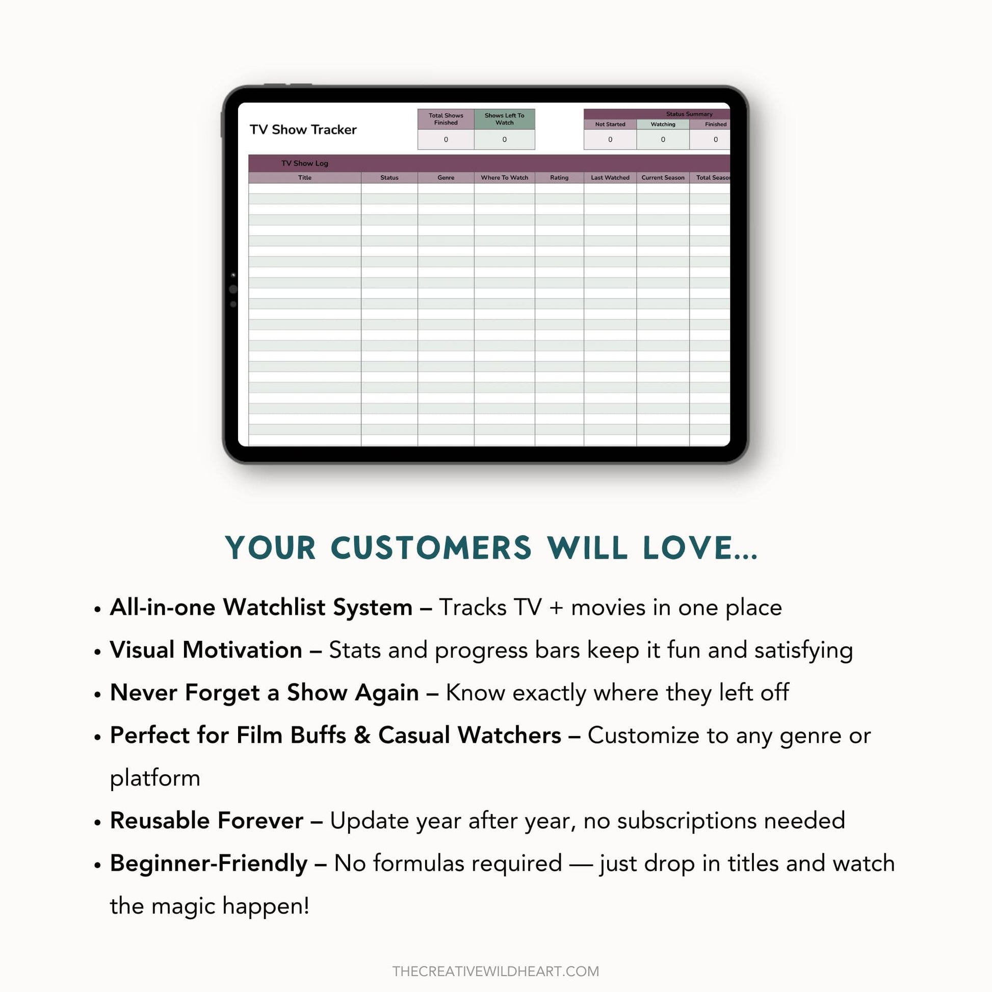 Help your customers organize their binge-watching with a fun, easy-to-use tracker they’ll love coming back to! 📺