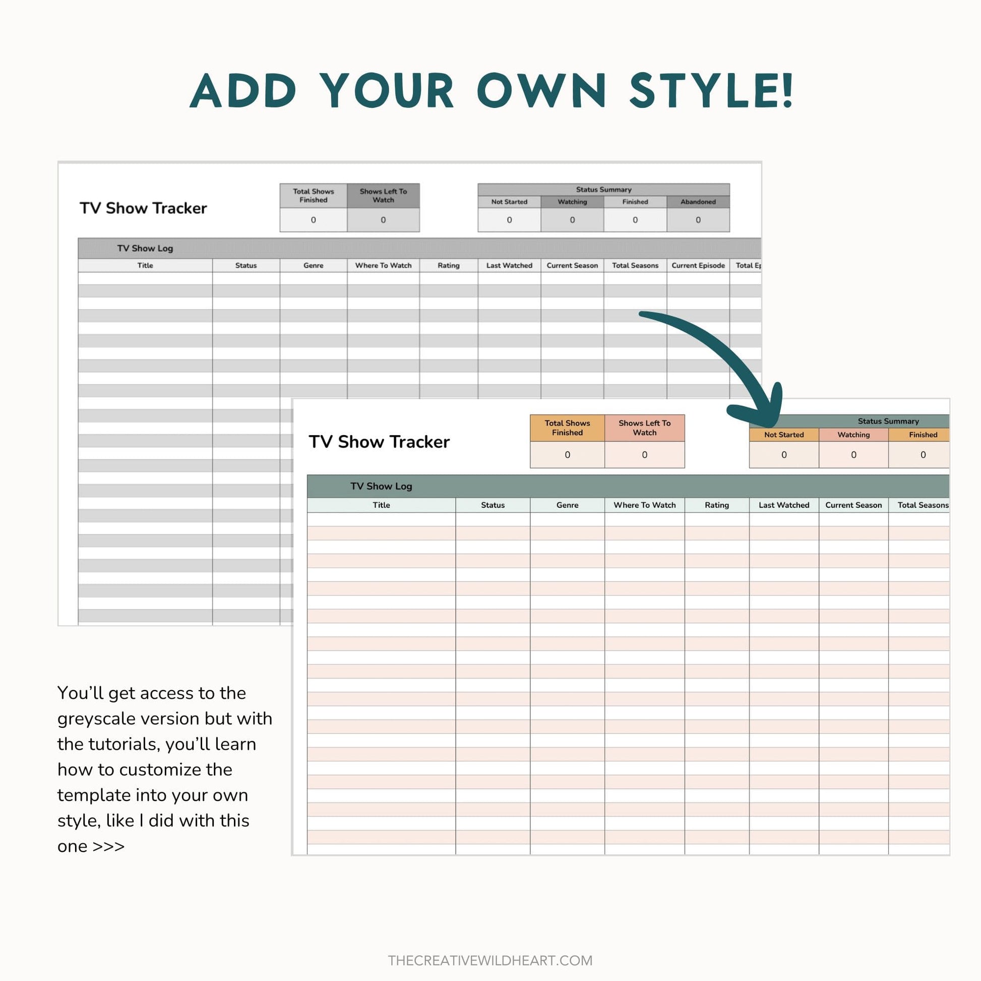 Perfect for entertainment lovers, journalers, and tracking addicts, this template helps them stay on top of what they’re watching, what they want to start, and what they want to rewatch again and again.